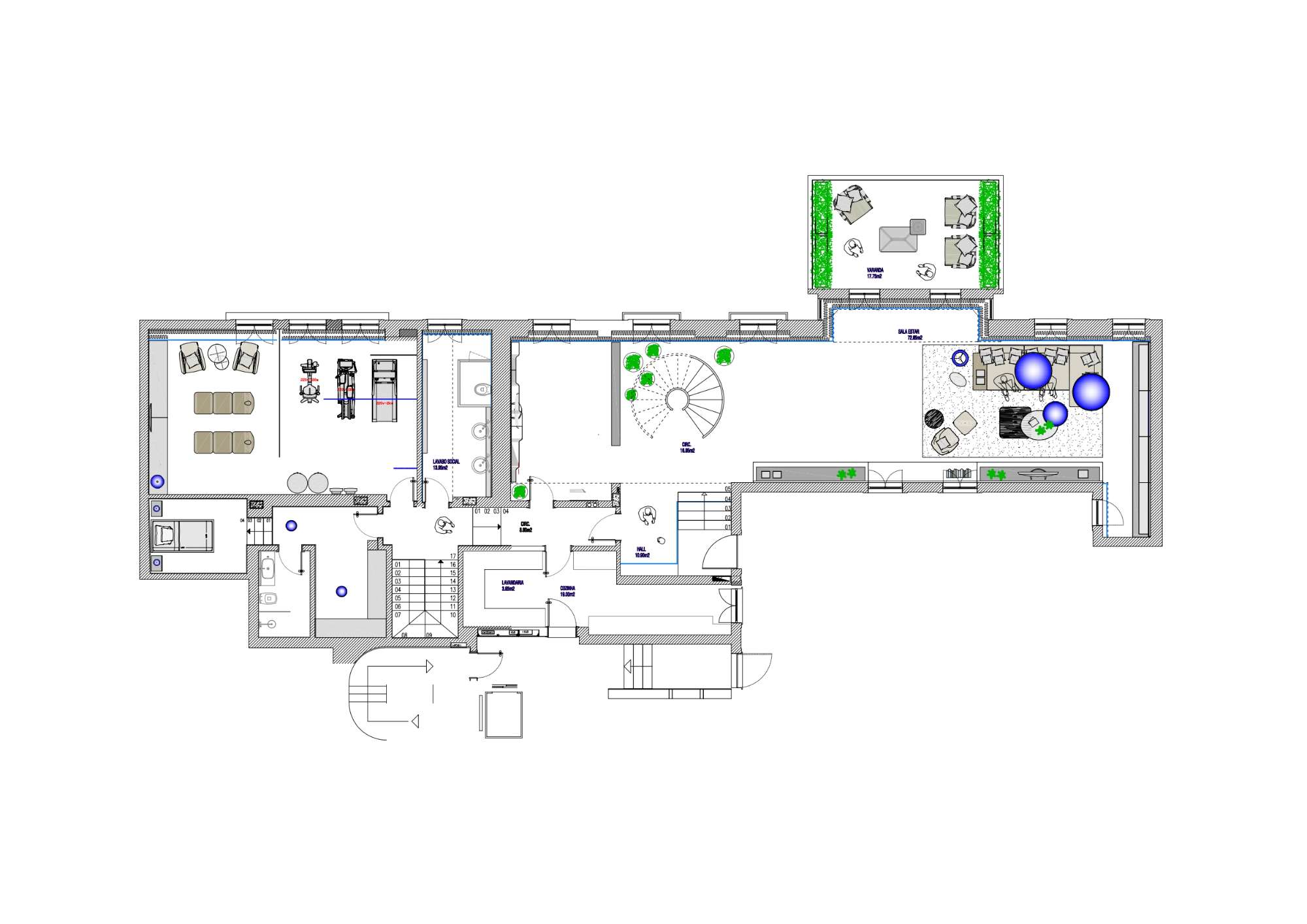 - Climatização com grelhas de distribuição nas paredes e tetos;